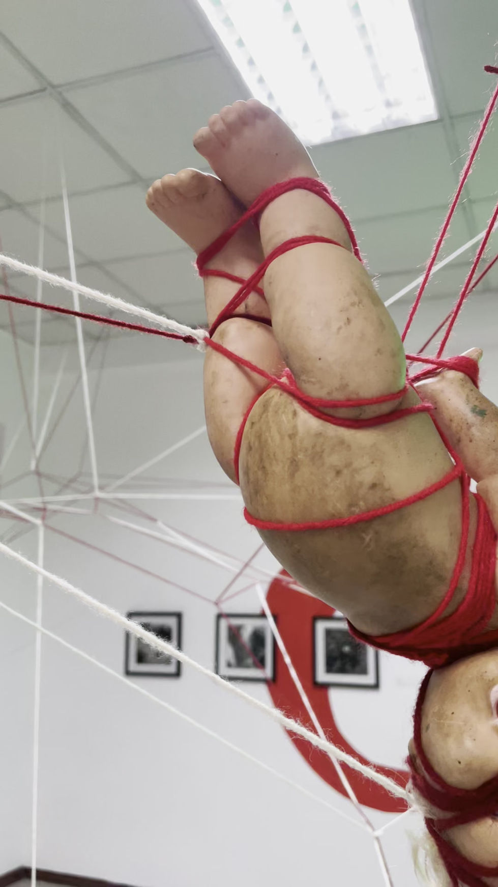 *Pictures are from TUKUY _performance at La Parcería on Feb 2025 (Madrid) & Past research done in 2021 with artist Margarita González, where "tukuy" operated as a one-time, performed-installation that intended to weave the inside with the outside: walking people with walls, hands to chairs, ears with sealling, as an embodied connection experience of memory, identity and territory. Presented in Expo Resistencia, en la Vitrina de la Casa de la Cultura NA (Ecuador).